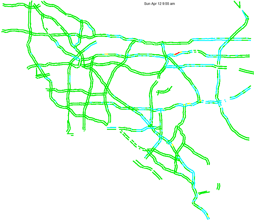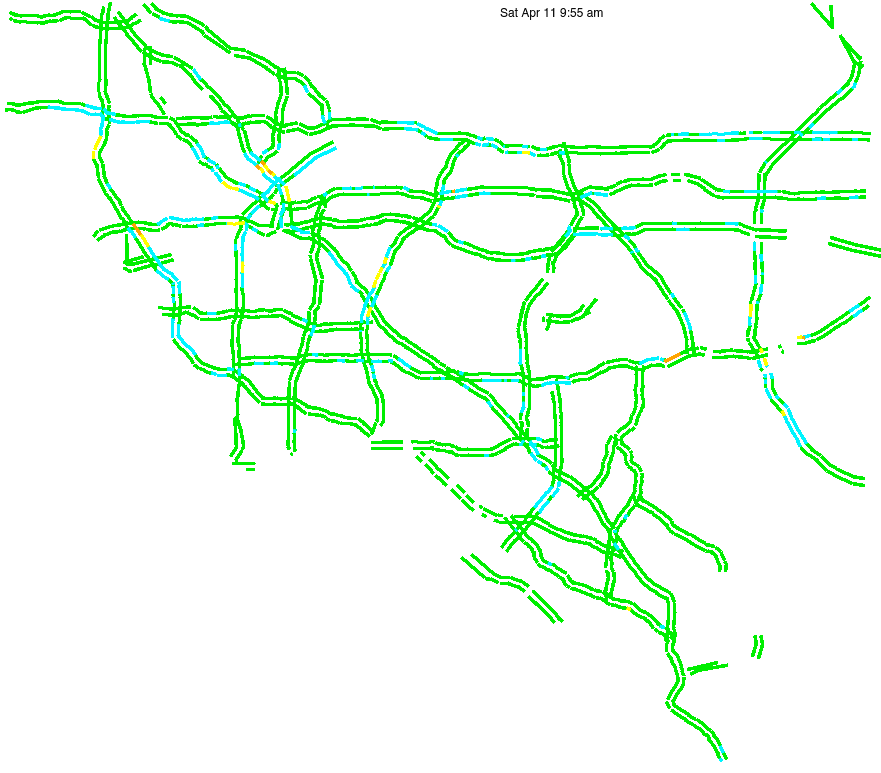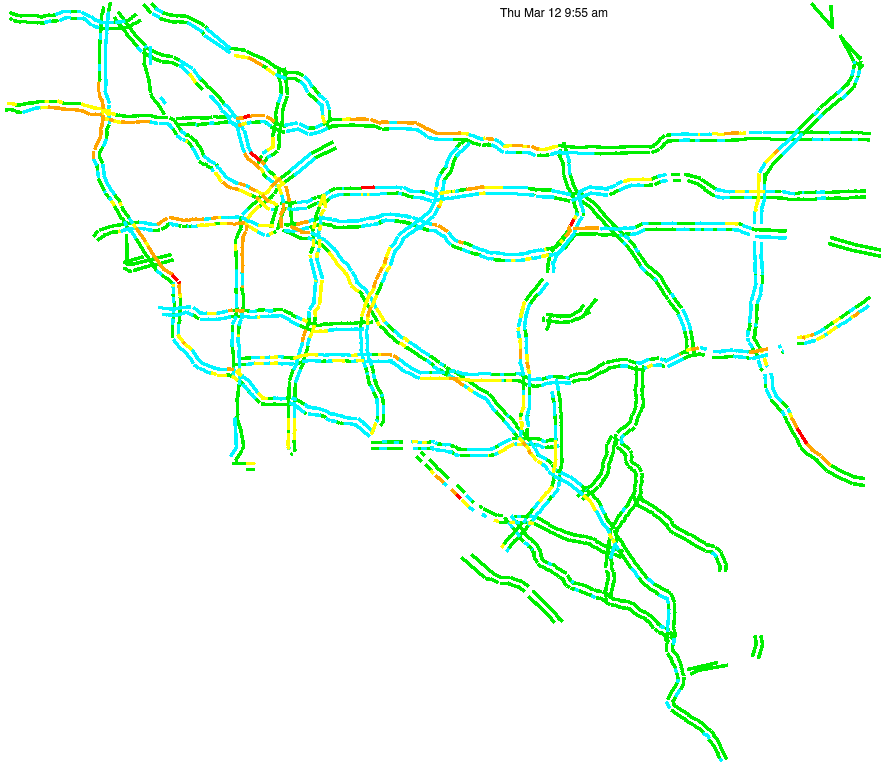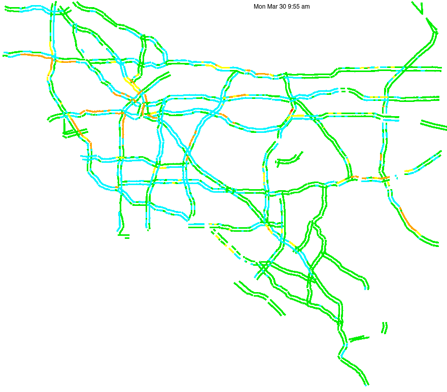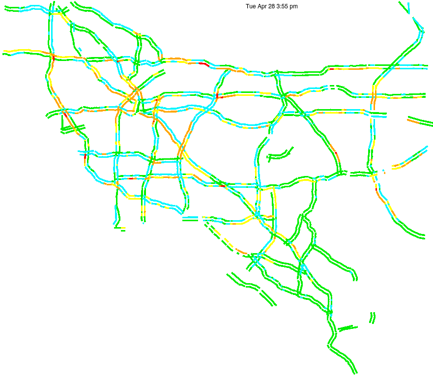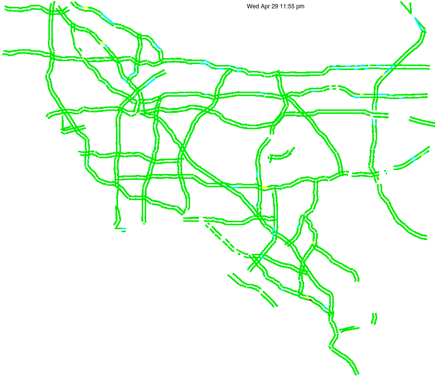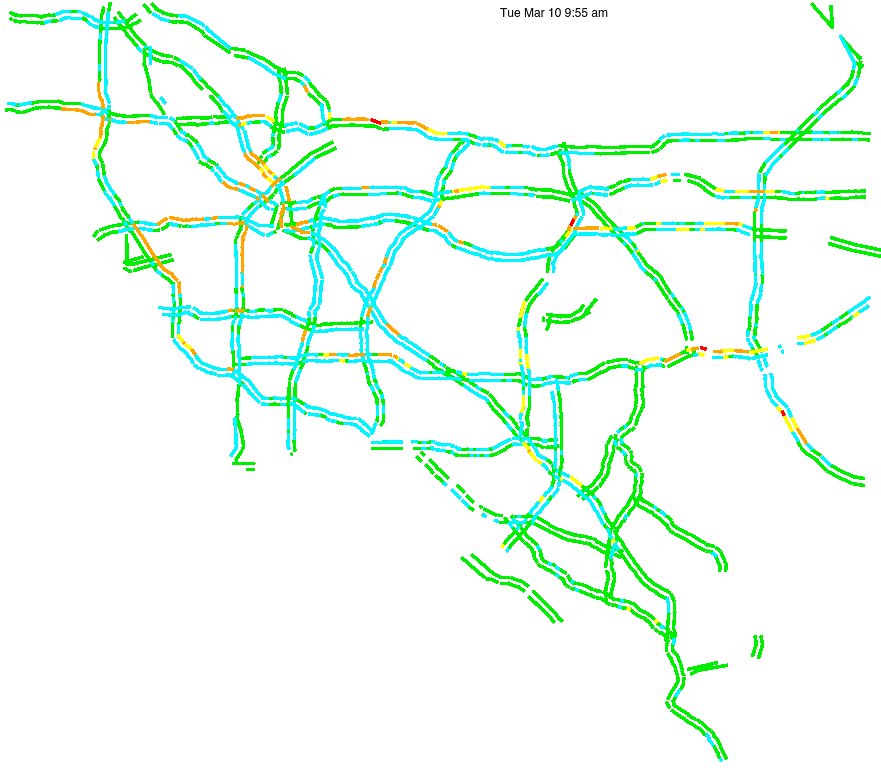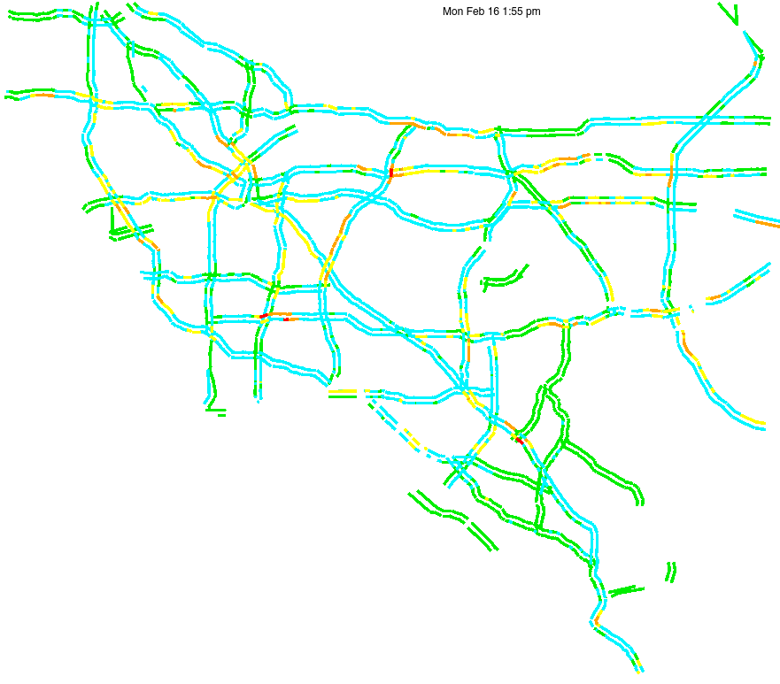 This is a map of historical traffic over 1 hour of time. The colored lines represent speed.
