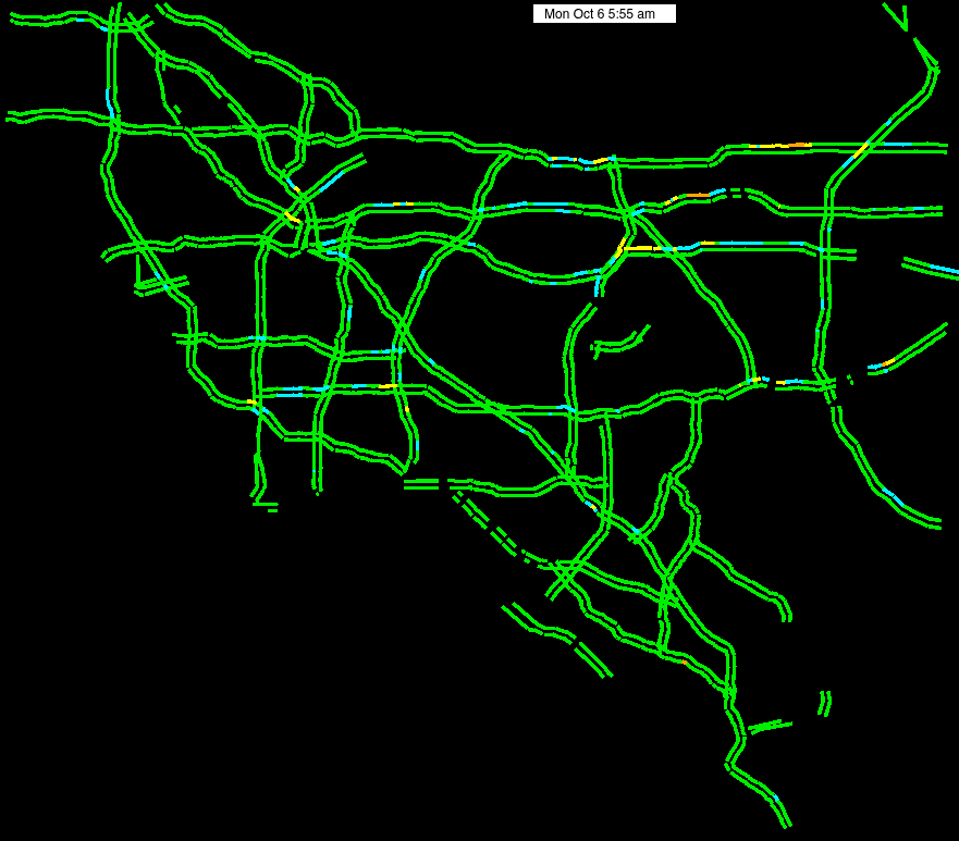 This is a map of historical traffic over 1 hour of time. The colored lines represent speed.