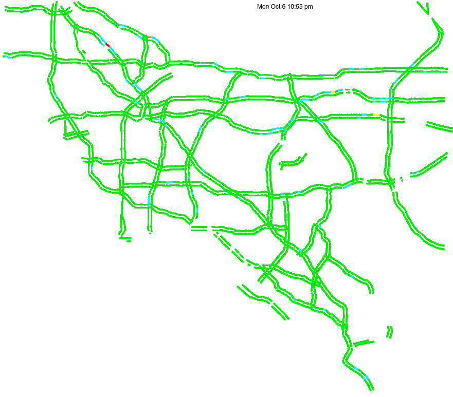 This is a map of historical traffic over 1 hour of time. The colored lines represent speed.