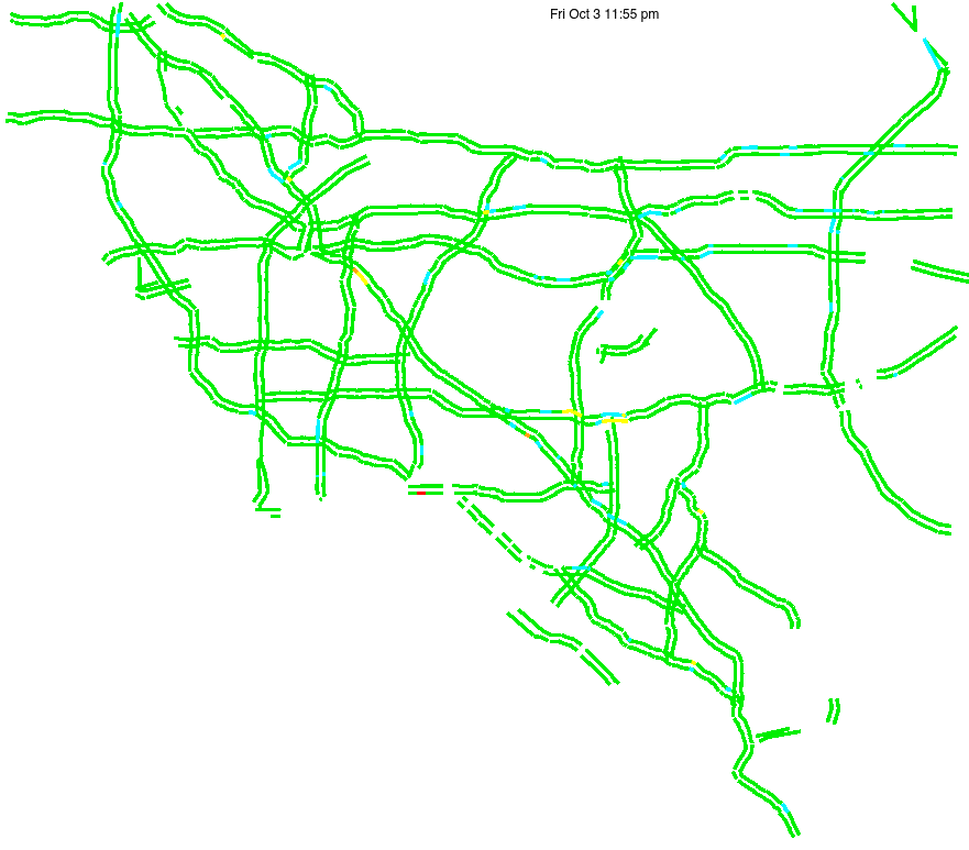 This is a map of historical traffic over 1 hour of time. The colored lines represent speed.