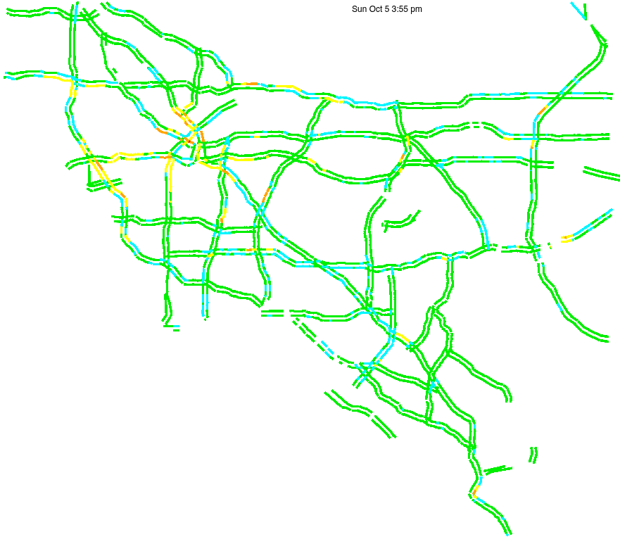 This is a map of historical traffic over 1 hour of time. The colored lines represent speed.