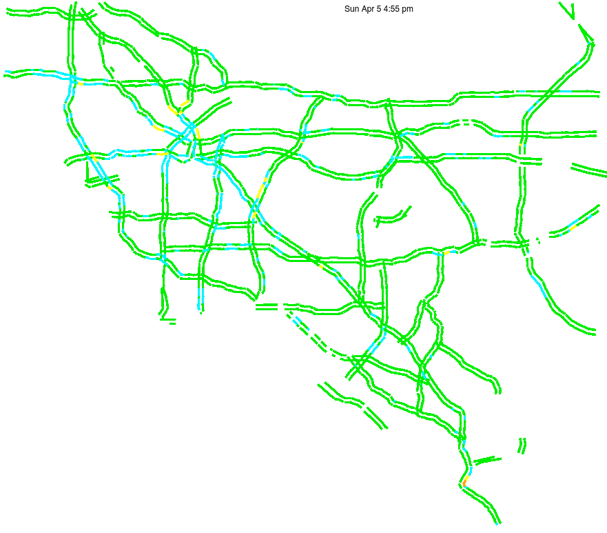 This is a map of historical traffic over 1 hour of time. The colored lines represent speed.