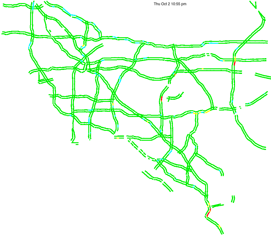 This is a map of historical traffic over 1 hour of time. The colored lines represent speed.
