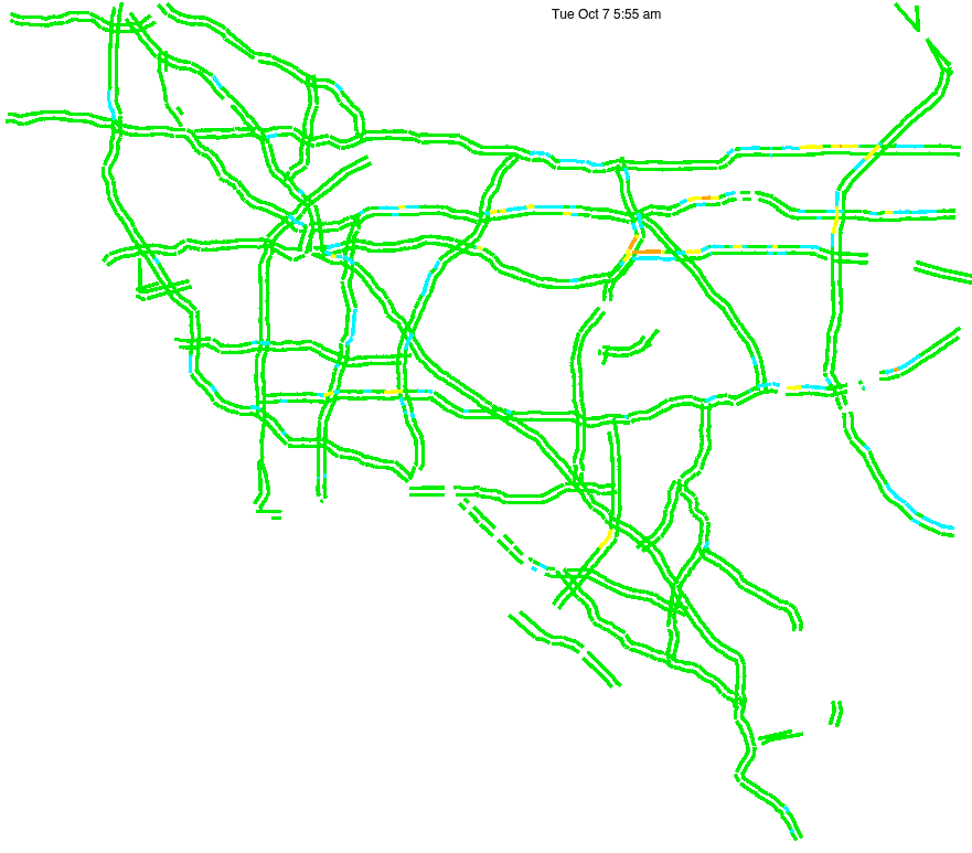 This is a map of historical traffic over 1 hour of time. The colored lines represent speed.