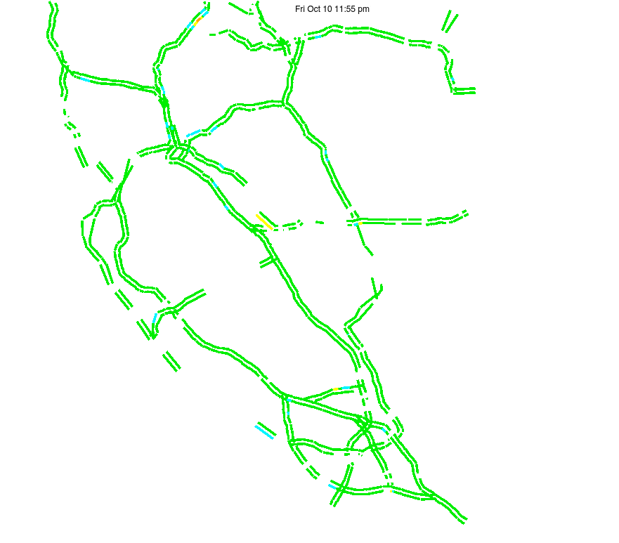 This is a map of historical traffic over 1 hour of time. The colored lines represent speed.