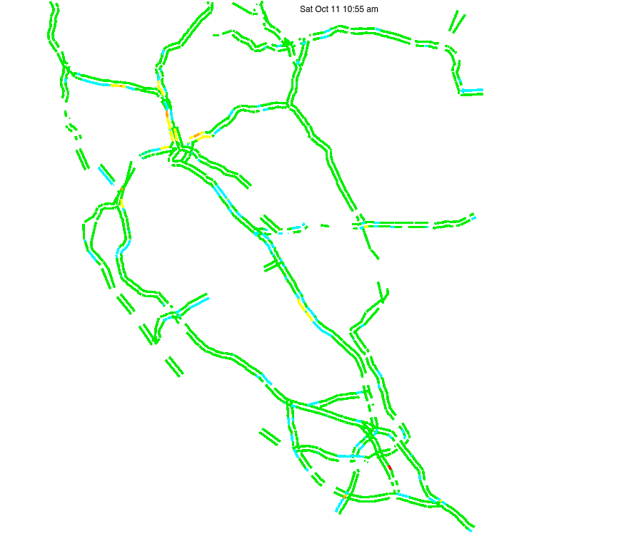 This is a map of historical traffic over 1 hour of time. The colored lines represent speed.